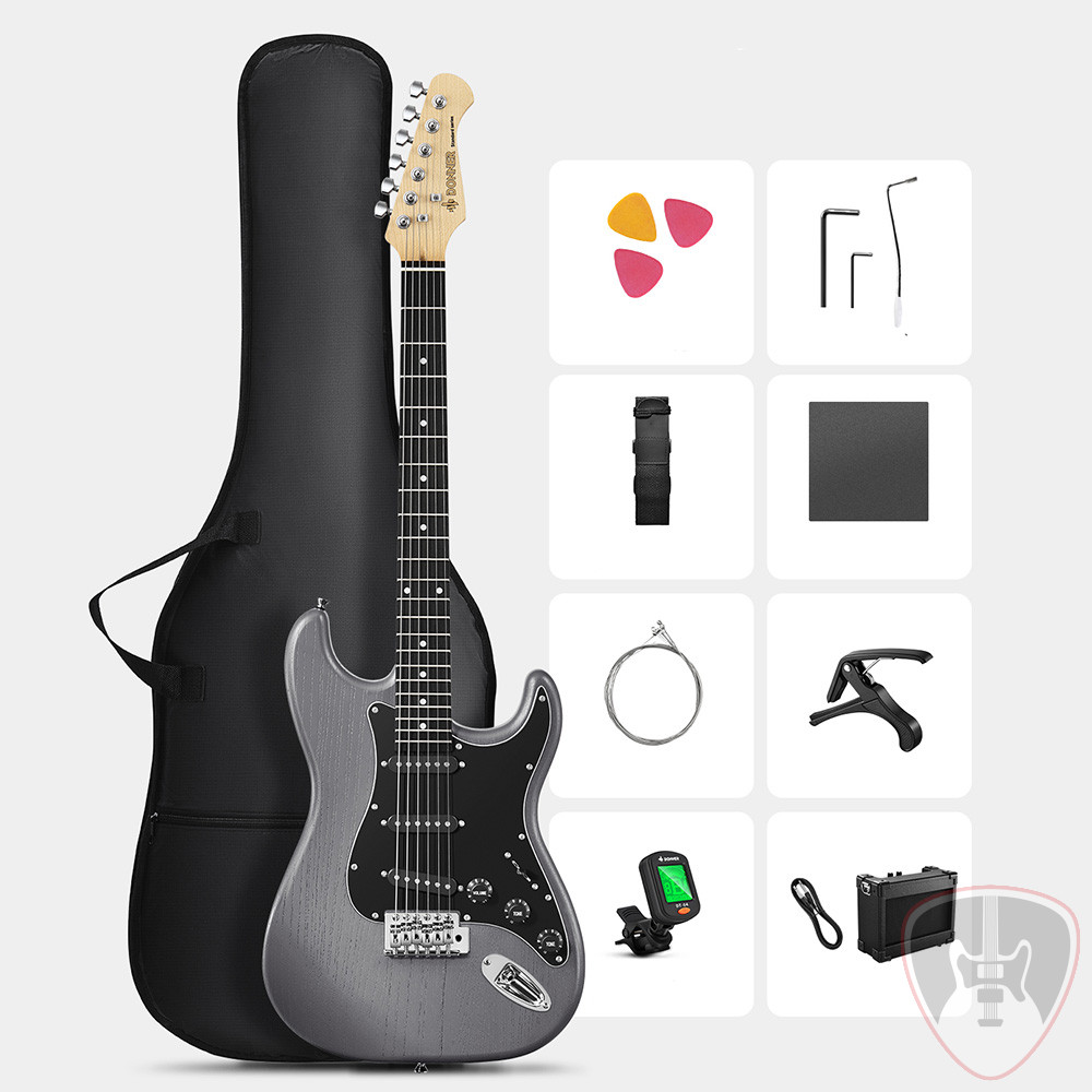 Donner elektromos gitártokot, 5W-os mini erősítőt és hangolót tartalmaz. Tökéletes ajándék kezdőknek.