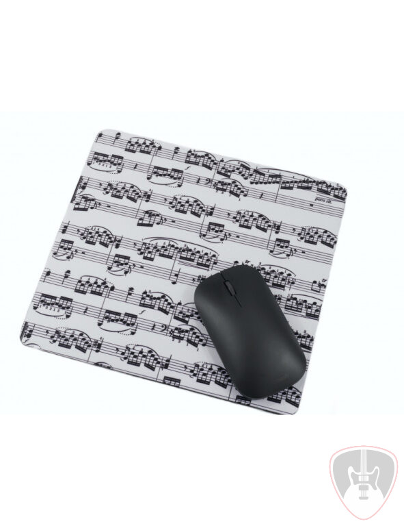 Fehér színű, fekete kottamintás egérpad