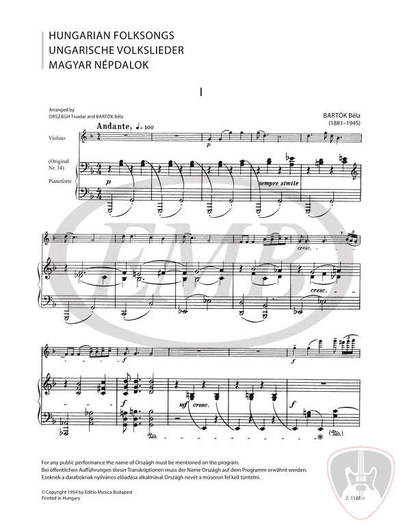 Bartók Béla: Magyar népdalok a "Gyermekeknek" c. zongoradarabok I-II. füzetéből