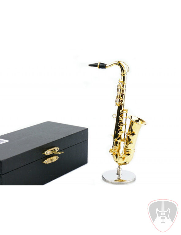 Miniatűr szaxofon állvánnyal díszdobozban (aranyozott)